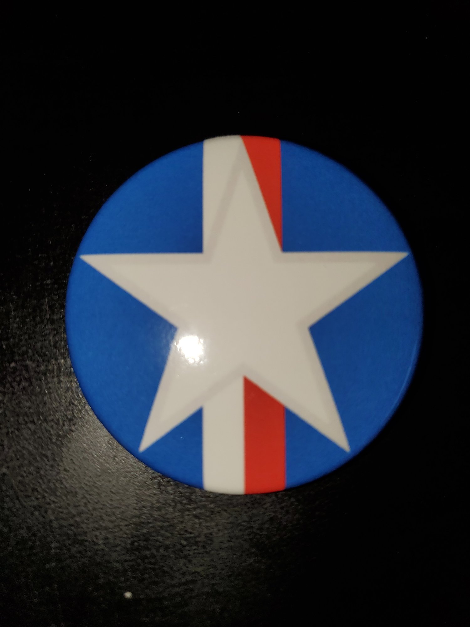 Featuring the Columbia logo, this custom round button features full color printing and a durable steel pin-back